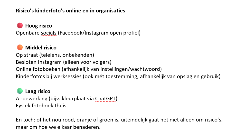 Soms vraag ik me af: wat is gevaarlijker? Een foto van kinderen op sociale media? Een kleurplaat die AI ervan maakt? Of gewoon samen de straat op?